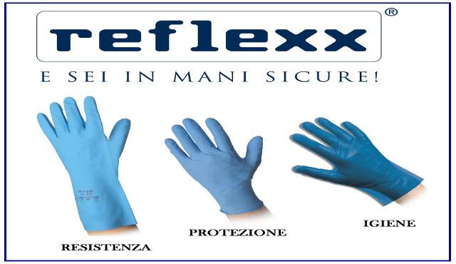 Reflexx è leader nella vendita su scala nazionale ed estera di guanti in nitrile, lattice, polietilene, vinile, monouso o riutilizzabili. I guanti a marchio Reflexx sono dotati di grande elasticità e sensibilità ottenuti grazie all’impiego di alta tecnologia degli impianti produttivi e dedicata scelta e selezione delle materie prime. I guanti Reflexx rispondono a diverse normative in materia Medicale, di Sicurezza sul Lavoro e Contatto Alimentare e questo garantisce un’alta qualità, resistenza e sicurezza del prodotto.